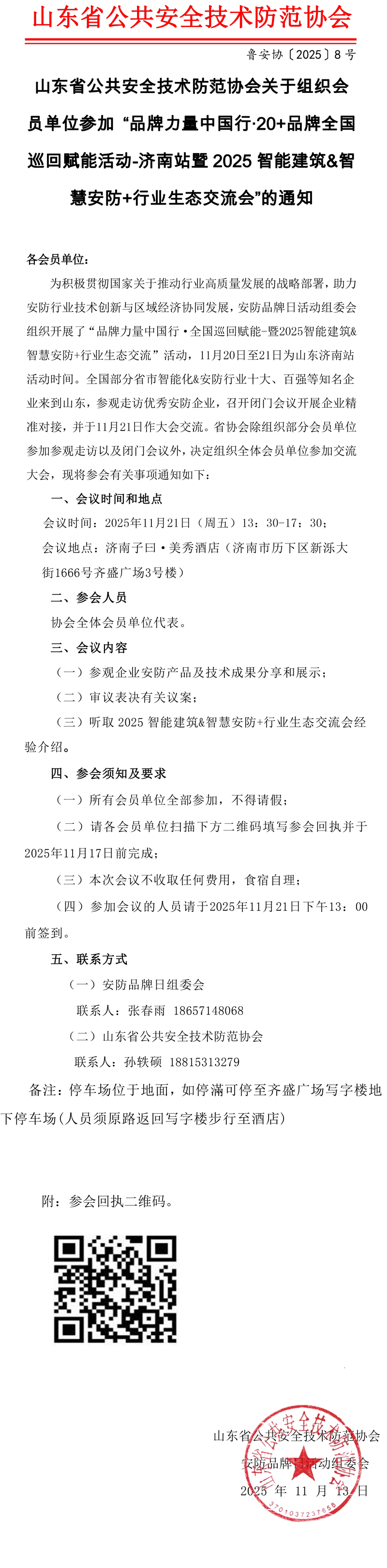 山东省公共安全技术防范协会关于组织会员单位参加 “品牌力量中国行·20+品牌全国巡回赋能活动-济南站暨2025智能建筑&智慧安防+行业生态交流会”的通知
